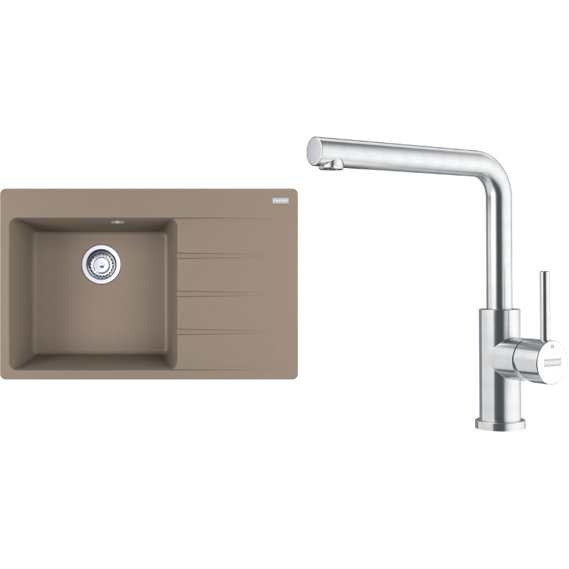 Cenově zvýhodněný set Franke G288KA obsahuje granitový dřez s odkapem CNG 611-78 TL/2 Kašmír a baterii FC 6985.501 SMART GLENDA Celonerez.