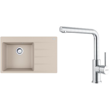 Cenově zvýhodněný set Franke G288SA obsahuje granitový dřez s odkapem CNG 611-78 TL/2 Sahara a baterii FC 6985.501 SMART GLENDA Celonerez.