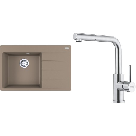Cenově zvýhodněný set Franke G290KA obsahuje granitový dřez s odkapem CNG 611-78 TL/2 Kašmír a baterii s vytahovací koncovkou FC 6986.501 SMART GLENDA Celonerez.