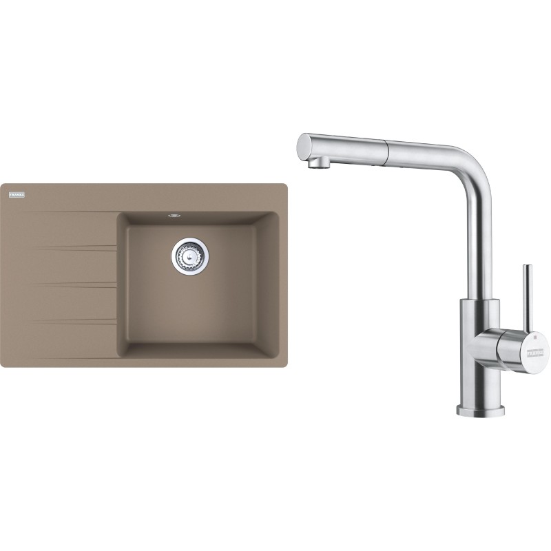 Cenově zvýhodněný set Franke G289KA obsahuje granitový dřez s odkapem CNG 611-78 TL/7 Kašmír a baterii s vytahovací koncovkou FC 6986.501 SMART GLENDA Celonerez.